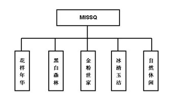 MISSQ以时尚流行站为整合点,通过引领国际潮流的饰品,向消费者提供最前端的流行时尚。全方位的满足不同生活形态的目标消费群的多层次需求。时尚流行站的构架如下: