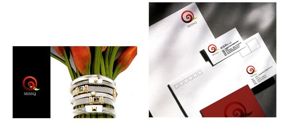 ①标志以品牌名MISSQ中的Q字母为设计元素,通过艺术变形,形成具有浓厚装饰味道的回旋形图案,表达出品牌的行业特征;同时,增强品牌印象,加深受众记忆力。