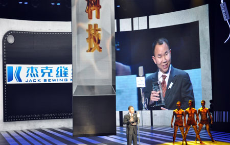 2010328晚,“杰克·2009中国服装品牌年度大奖”颁奖典礼在北京世纪剧院隆重举行。除了颁布传统奖项以外,大奖评委会还授予杰克科技贡献大奖,肯定了杰克缝纫机为服装缝纫技术做出的卓越贡献。