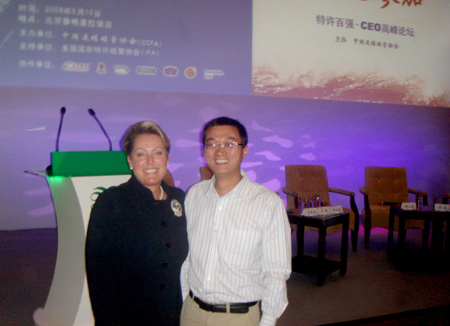 2009年5月10日,南方略重庆公司总经理王清华在北京香格里拉酒店与美国DWYER集团主席DINA女士一起交流DWYER在中国的品牌发展问题。