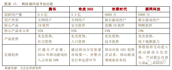 同时,我们更关注打通PC和移动的跨终端内容平台,此类内容平台具备独立的流量导入能力,其娱乐内容业务的发展具备可持续性,可享受高估值水平。