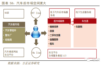 汽车后市场的服务包含更多内容,其中有维修保养、改装、二手车交易、金融、租车等,每一项都是千亿级的大市场,通过极致的后市场服务来获取用户,最终形成车生活服务,即车联网。其O2O的发展模式也是通过汽车垂直平台和社交平台的入口优势将用户引流至线下的服务商。
