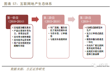 我们认为互联网对于汽车产业的改造,共分三个阶段。目前仍处于第一阶段。汽车垂直平台提供广告平台和线上引流的服务,并没有从根本上提升用户的购车体验,汽车电商模式也仅处于少数品牌个别型号的试水阶段。我们认为,受制于汽车厂商和经销商的强势地位,汽车产业互联网化趋势爆发还需时日。